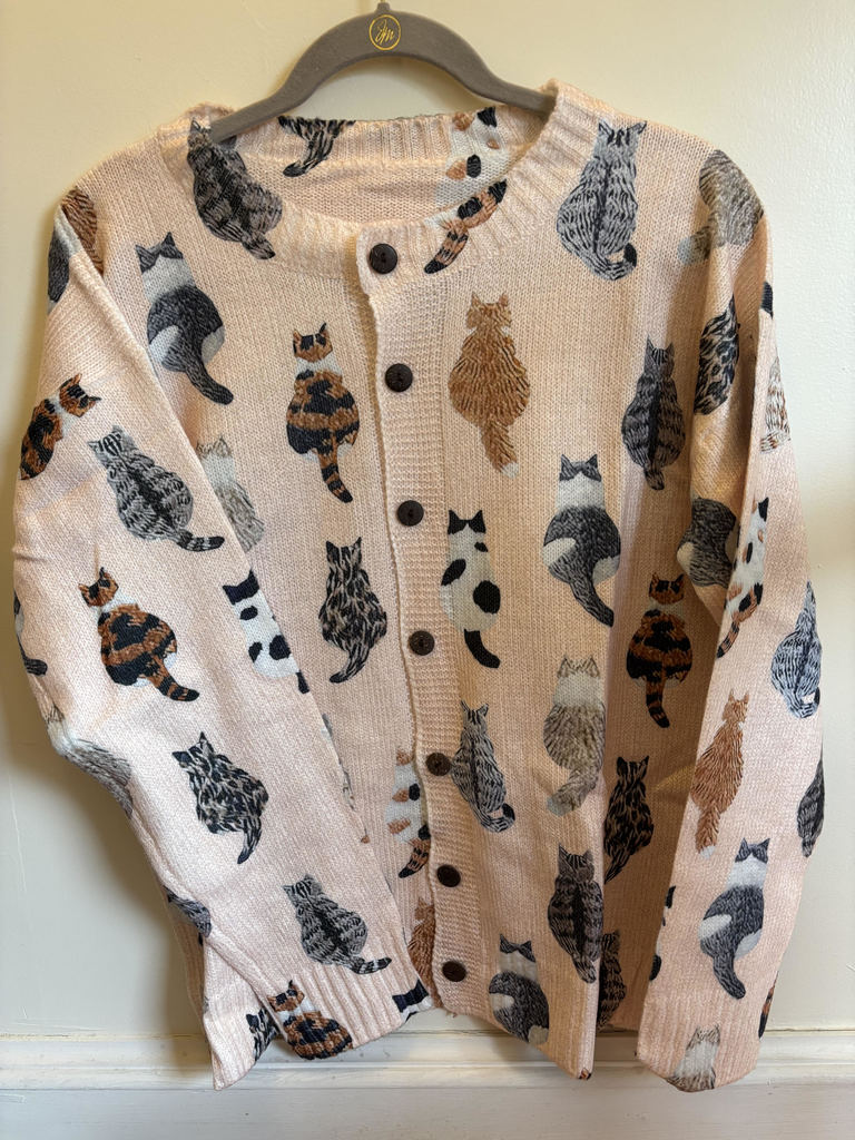 CARDIGAN SWEATER-PEACH COLOR WITH CATS-SIZE L