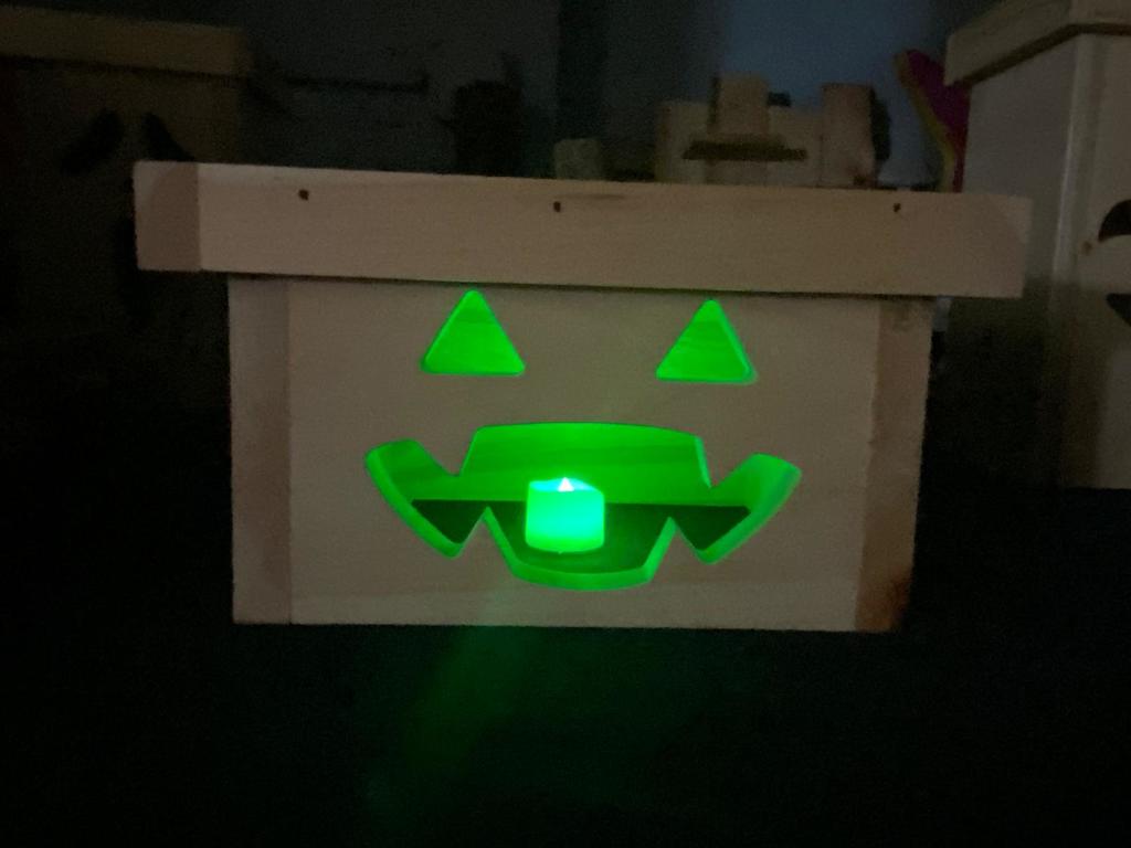 The Boo Box Lantern is a handcrafted wooden Halloween light box made in LARC?s Woodshop, designed with a cutout face that glows when you place an LED light inside (not included). With a removable lid and no open flame needed, it?s a safe and charming way to light up your mantel, porch, or Halloween display. Each one is made by hand with personality and purpose ? no two Boo Boxes are exactly alike. 6"x8"x9.5"