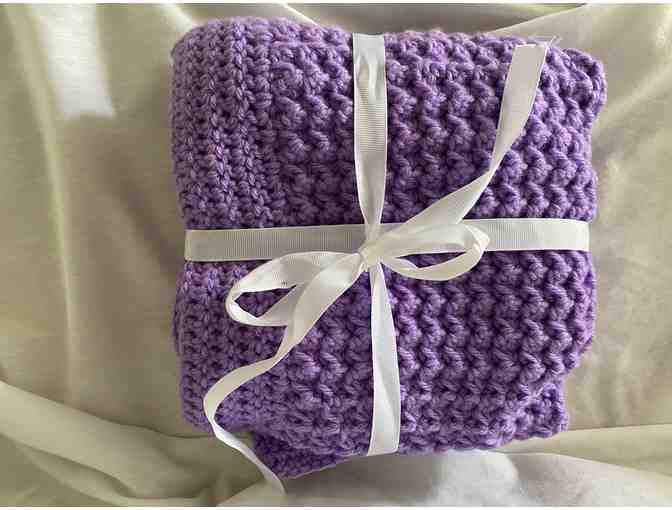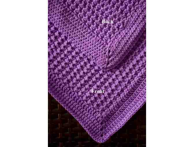 Hand knitted with love by Lynn Lonzanida Size is 27" x 27"