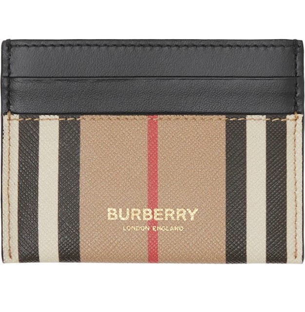 Dimensions: 4"W x 3"L Four card slots Center slip compartment Embossed Burberry lettering at front Icon stripe or vintage check print canvas Hand-painted edges Features environmentally conscious e-canvas, primarily made using renewable resources that require less water and generate less CO2 than conventional coated canvases Leather lining E-canvas (thermoplastic polyurethane/cotton); trim: leather Made in Italy