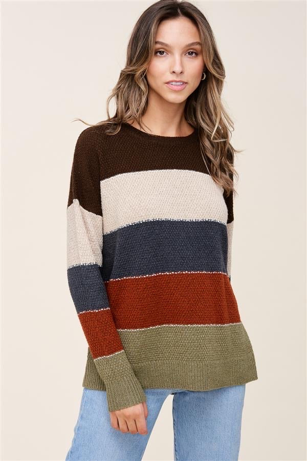 Perfect for the fall, this brown & olive sweater will look great on you! And by the way, it's super soft.