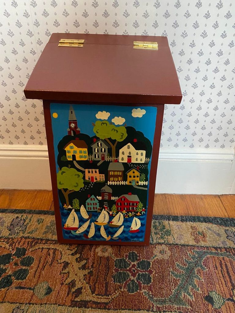 CAPTAIN'S QUARTERS RED MAILBOX - ART BY CAROL ELDRIDGE - 9 inches by 9 inches by 18 - BEAUTIFUL WORK OF PRIMITIVE ART