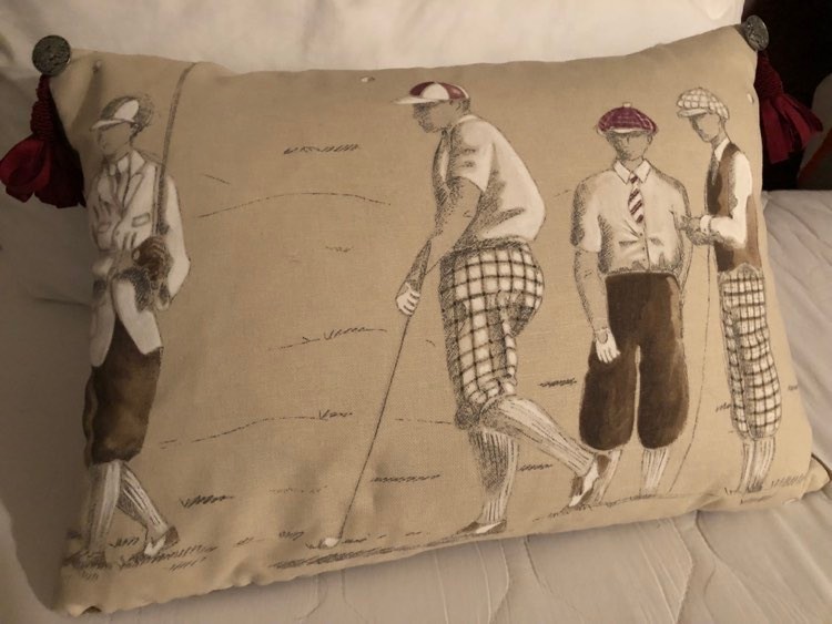 GOLFER PILLOW WITH CRUSHED VELVET BACK AND EMBELLISHMENTS - 16 INCHES WIDE BY 11 INCHES HIGH - VERY COOL! (6 1/2 INCHES THICK)