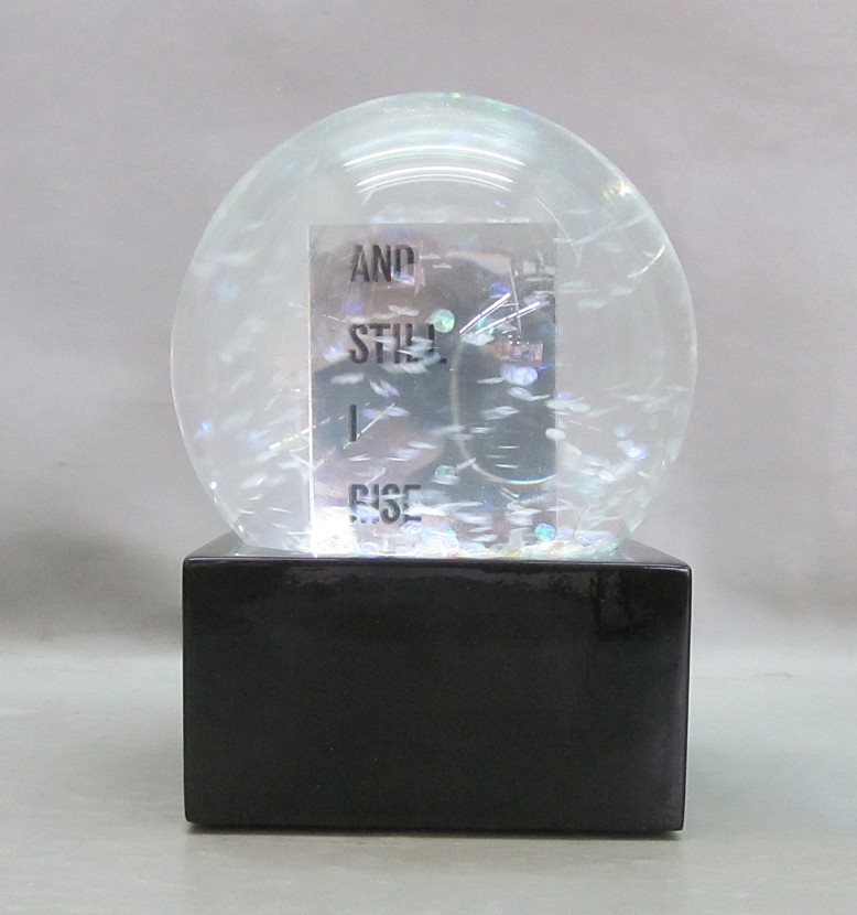 Snow globe, mixed media, 2017 Edition of 1,000, 145 x 100 x 100 mm, This snow globe contains some of the actual confetti that was poised to drop from the ceiling of the Javits center upon the election of our first woman President