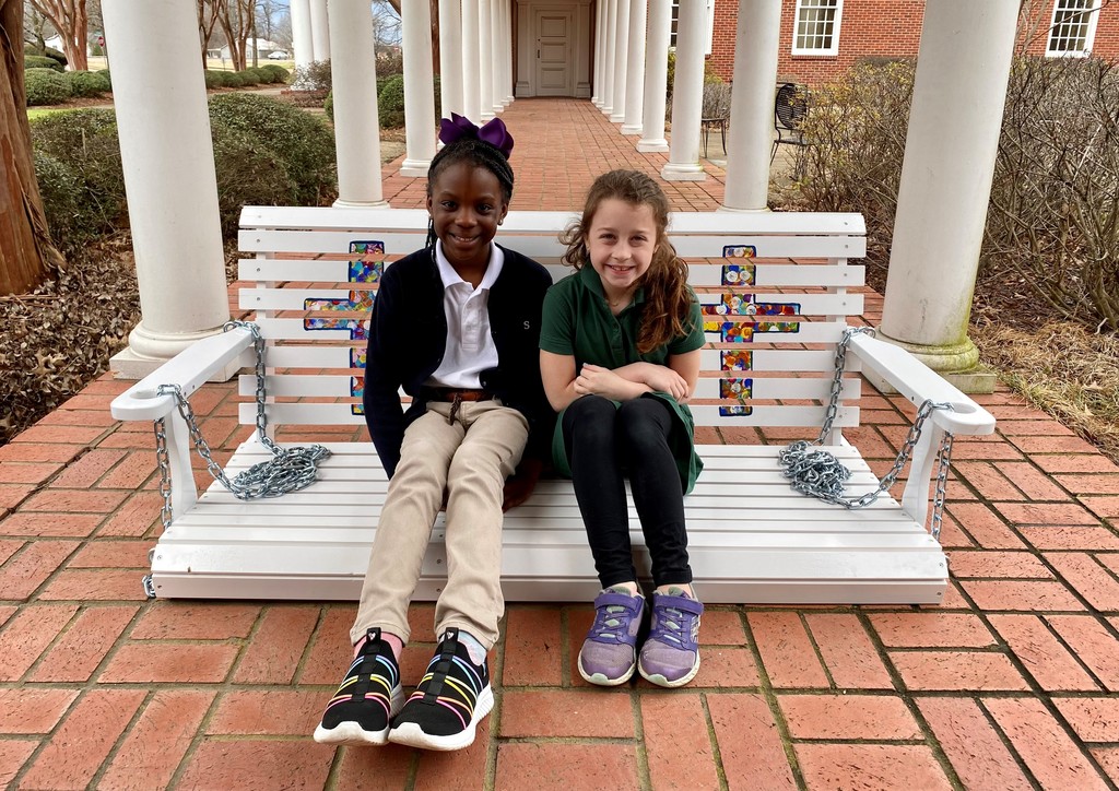 Bid on this beautiful treasure made by PDS 3rd grade. Ann Nowell, artist and PDS mom, helped 3rd grade paint this beautiful cross porch swing. The center folds down to provide an arm rest with each sweet 3rd graders' signature.