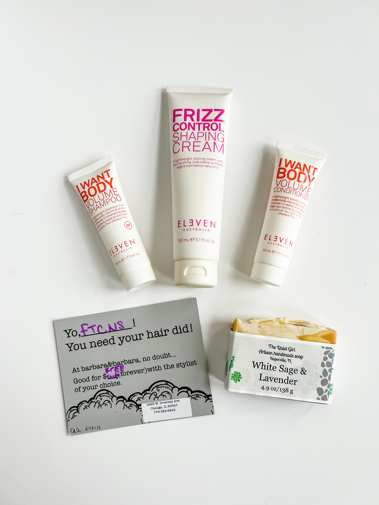 Item for bid is a haircut with the stylist of your choice and a goody bag of bath products from The Quiet Girl.