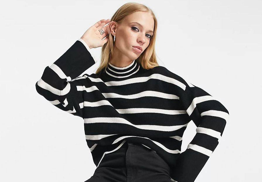 "ONLY" BRAND HIGH NECK SWEATER IN BLACK AND WHITE STRIPE - WOMEN'S EXTRA LARGE
