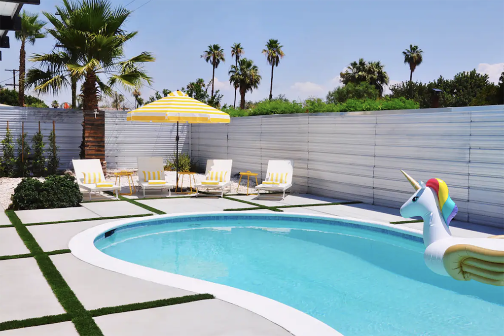 ** 2 nights in June-August. Dates to be confirmed and booked after auction directly with donor. ** $200 cleaning fee to be paid by winner https://www.airbnb.com/rooms/44612480?source_impression_id=p3_1675720043_Ov6mbuaWHF2Vfqi8&guests=1&adults=1 Your mid-century desert getaway is waiting for you. This gorgeous remodeled 3 bedrooms 2 bath house is surrounded by a large, private, lush yard which includes a large pool, an outside shower, a covered dining area ideal for barbecues, a hammock shaded by the palm trees and a large front sectional sofa to enjoy stunning sunsets in front of a warm outdoor firepit, and to later on count the stars in the sky. With more than 7,400 sq ft of outdoor/indoor living area, this Palm Springs home has an abundance of space to enjoy a sunny getaway in casual elegance, with a dozen of enormous palm trees and mountain views all around. Plus, pick limes from our lime tree for your Margaritas! The indoor and its furnishings will continue to bring you to a classic and authentic mid-century home. The large open-space living room includes two lounging areas, one with a Smart 4K TV, the other one dedicated for a more relaxing time, perfect for indoor yoga, openings a book, play some vintage games or to enjoy our high speed internet wifi. The indoor dining is facing a large window with cactus planted to keep your desert experience all the way and is attached to a fully equipped kitchen, with brand new modern appliances (fridge, freezer, oven, dishwasher and Nespresso machine). We also partnered with a vineyard to create our own 'Casa Evelyne' wine. The kitchen takes you directly to the covered patio to allow more comfort during the day after relaxing in the pool. Enjoy our brand new barbecue and at night, turn on the string light to make your retreat unforgettable. Additionally, the three bedrooms are bright and each bedroom offers great privacy. Two bedrooms have their own access to the frontyard and breathtaking mountain views. The Master bedroom suite has a pool view and its private bath. Each bedroom includes a memory foam bed, new linens, towels and pillows - and comfortably sleeps up to 6. All bedrooms are linked through a hallway in which you'll find a large hidden washer and dryer. This house is fully gated making it very private, secure and quiet. The large front yard has a hammock and a large sectional with its outdoor firepit for cozy colder nights during winter, and the backyard has a large pool that you can enjoy all year long with our 'Palm Springs' mural, made by a local artist. The house is perfectly located to explore the area. Located 7 minutes away from the main street of Palm Springs, 5 minutes away from Cathedral City and just 40 minutes away from Joshua Tree. Trader Joe's, Target, Von's and all the main stores are all less than 10 minutes away. This Palm Springs home is located one minute walking away from a giant park and its stunning views. Our garage fits two cars and the driveway another two cars. The driveway is located inside the gate for more security. You will also find two electric bikes available to go explore the city.