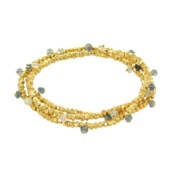 BEADED RONDELLE WRAP BRACELET GOLD SAPPHIRE