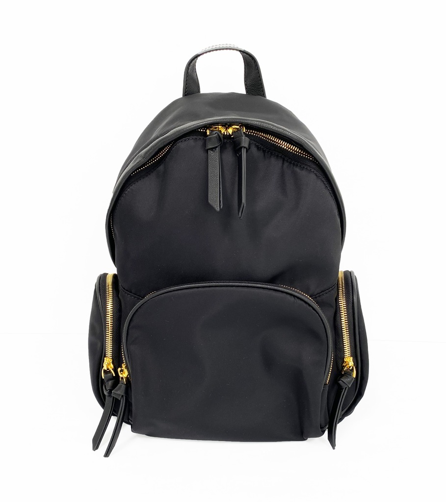 This cute, medium-sized backpack is made with high quality, water repellent nylon paired with top grain leather trim. Lightweight and durable, this is the perfect everyday backpack. You can also use it as a chic gym bag or a day trip bag. The padded shoulder straps sit comfortably on the shoulders and can be adjusted short or long. Cell phone pocket and zipper pocket inside the bag.