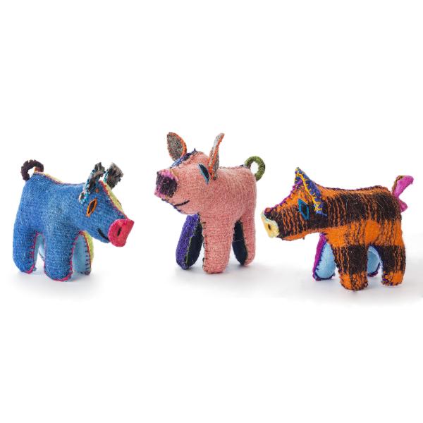 Chiapas Wool Felt Animalitos - Trio Of Piggies