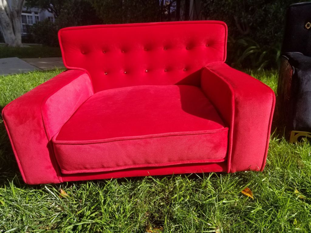 Otto's Empire dog bed- Red crystal buttons, red croc, clear acrylic legs.