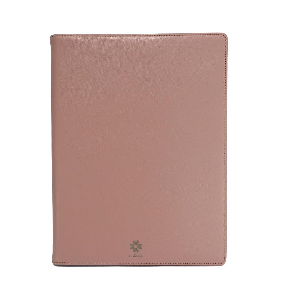 Stay chicly organized with this Saffiano leather covered work folio. The folio opens up to reveal several functional pockets. Large pocket on left side fits A4 papers. Zipped pocket keeps your pens and small items secure. Card slot to put your business cards. Right side is a padded sleeve that will fit an iPad Pro 9.7" or a mobile-sized laptop up to 12".