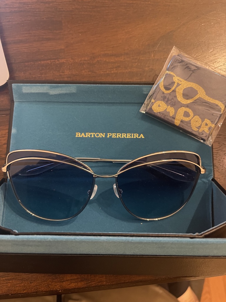 One pair Barton Perreira Captivant Sunglasses in silver/sea splash color, size XL, from Dan Deutsch Optical.