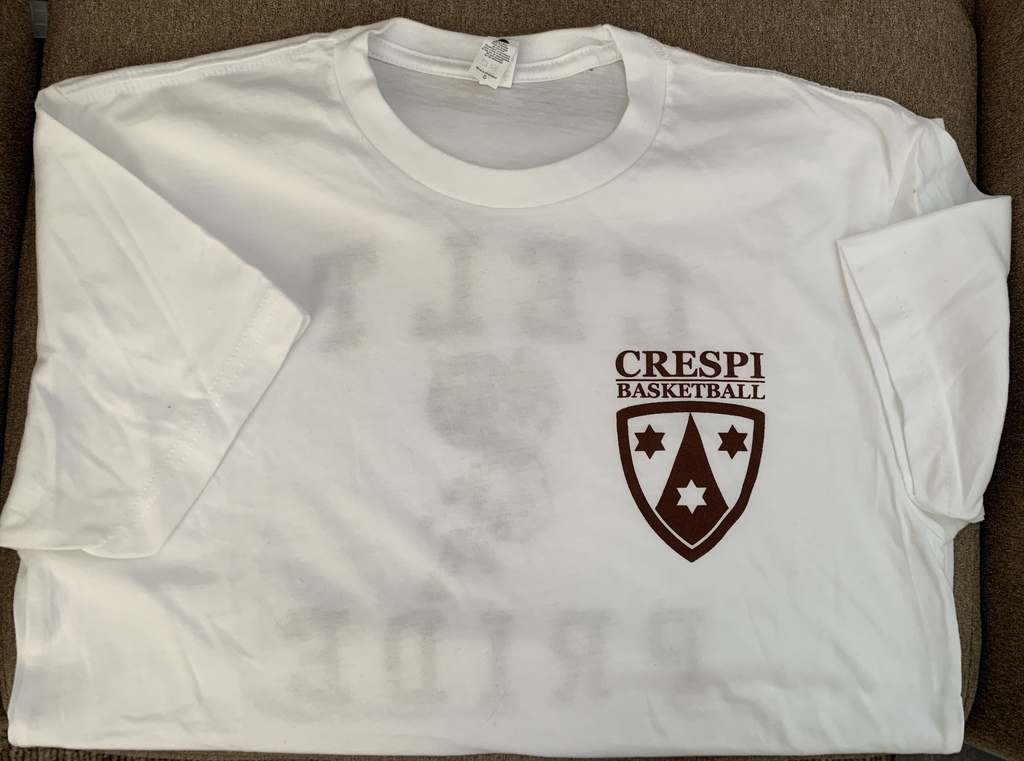 Show your pride and support of Crespi Basketball with this tee, Unisex size Small.