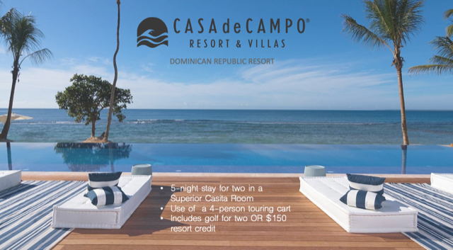 5-night stay for two in a Superior Casita Room at Casa de Campo Resort & Villas - a Dominican Republic Resort. Use of a 4-person touring cart. Includes golf for two OR $150 resort credit.