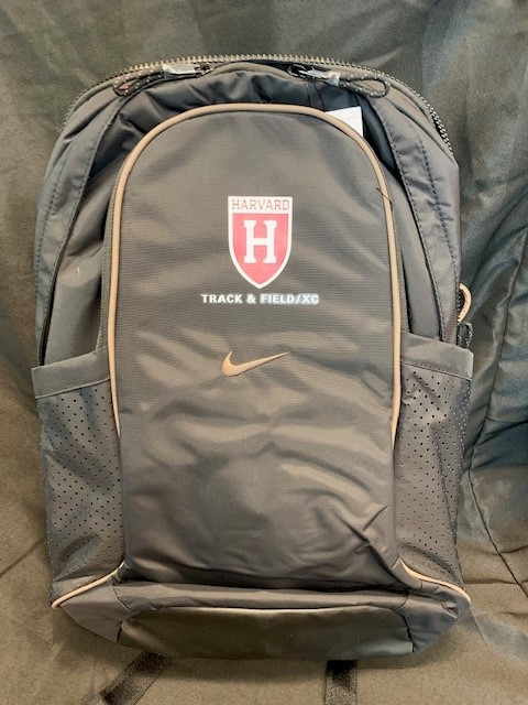- Nike black team backpack with "HARVARD H" Shield & "Track & Field/XC" logo on front center
