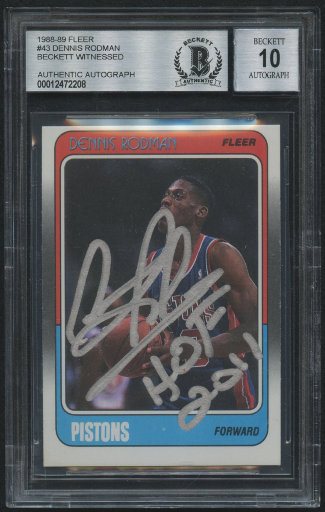 Enjoy Dennis Rodman Signed 1988-89 Fleer #43 RC Inscribed "2011 HOF" (BGS)