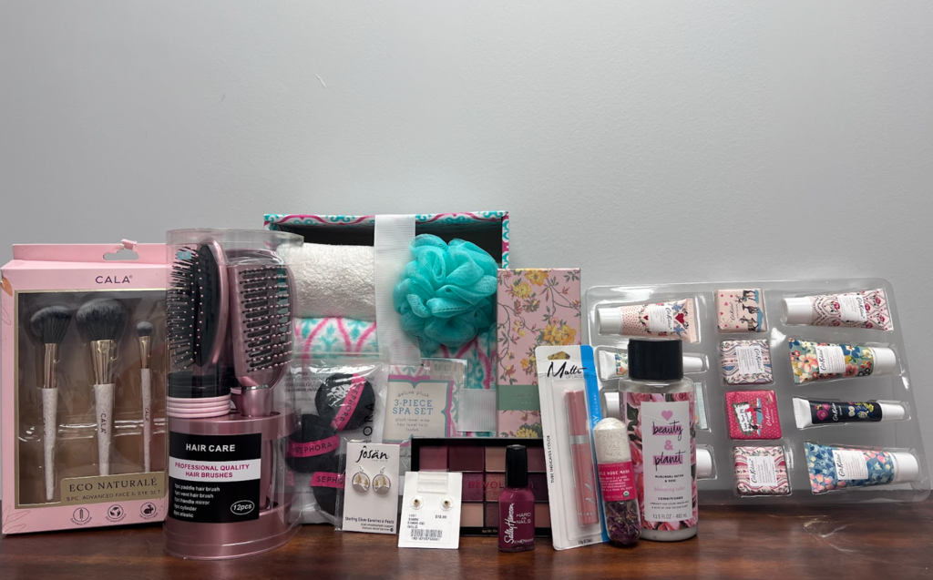 This basket contains vast assortments of beauty products, perfect for getting ready for special occasions!