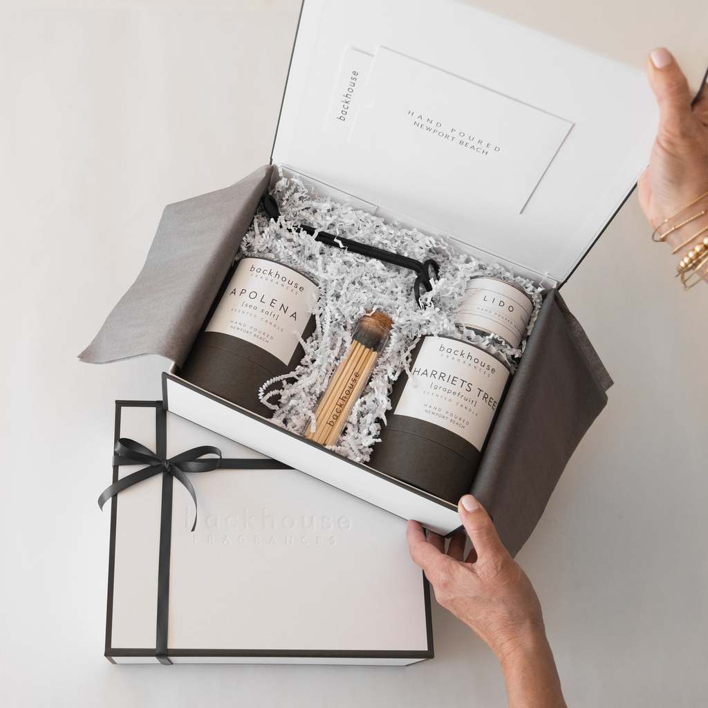 Includes one hurricane candles (Cassis scent) + two mini candles (pine and sandalwood scent) + bh wick trimmer + set of bh matches.