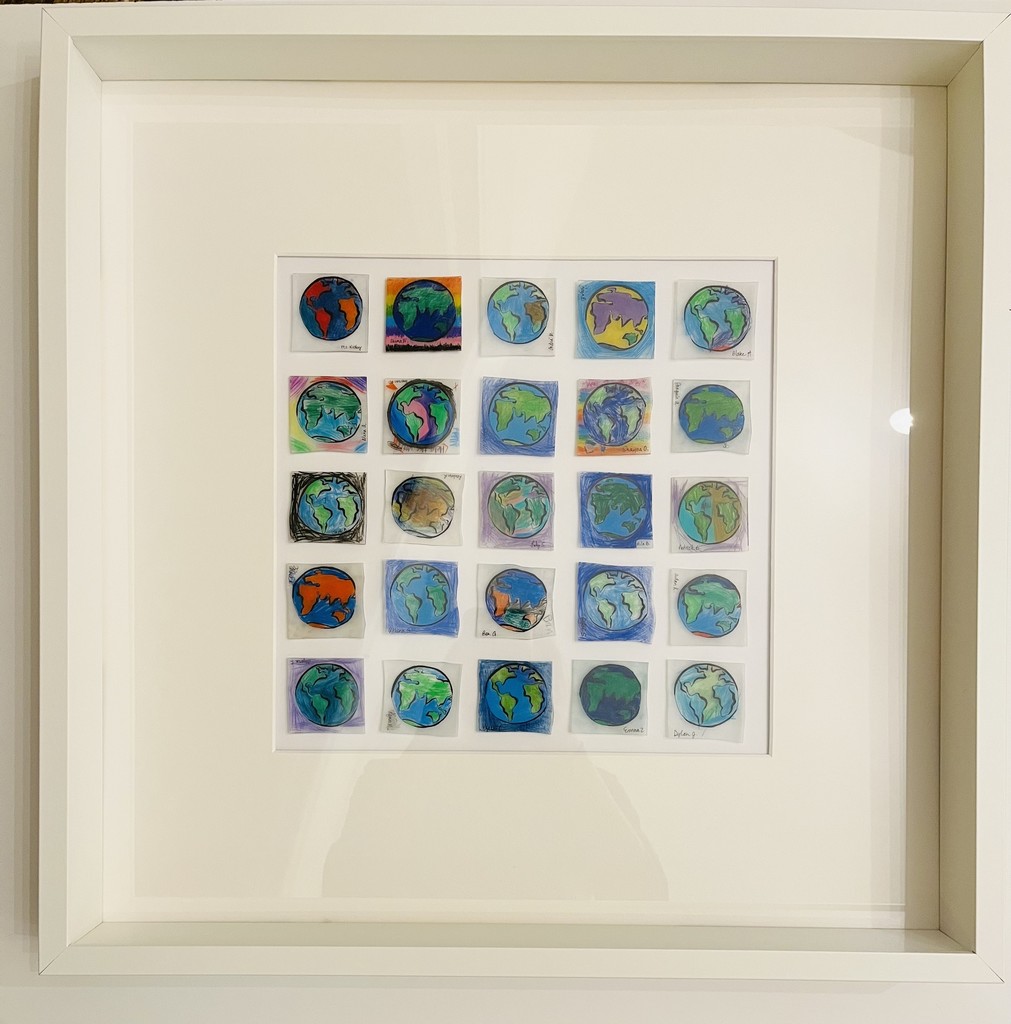 With a nod to how the third grade immigration curriculum makes the world more accessible to MNS students, and inspired by the quote "Imagine the world we could build together" which hangs outside the school's office, the third graders (and Ms. Nicky, too!) colored shrinky dink worlds however they liked, often choosing bold colors and hues not usually seen on the map. That's only fitting because, as everyone knows, this is their world. We're just living in it.