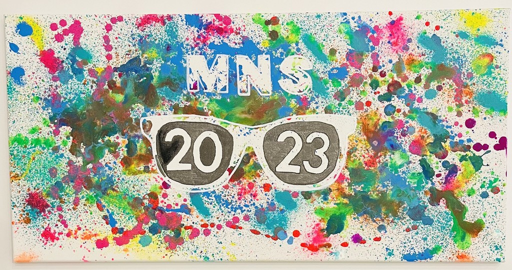 How does MNS prepare its 5th graders for the future? By helping them get ready for middle school! Graduation is just around the corner, so why not get a jump on commemorating it with this fun and memorable splatter painting, featuring class of 2023 sunglasses? And while you are here, check out this cute photo of Julie's class pre-painting.