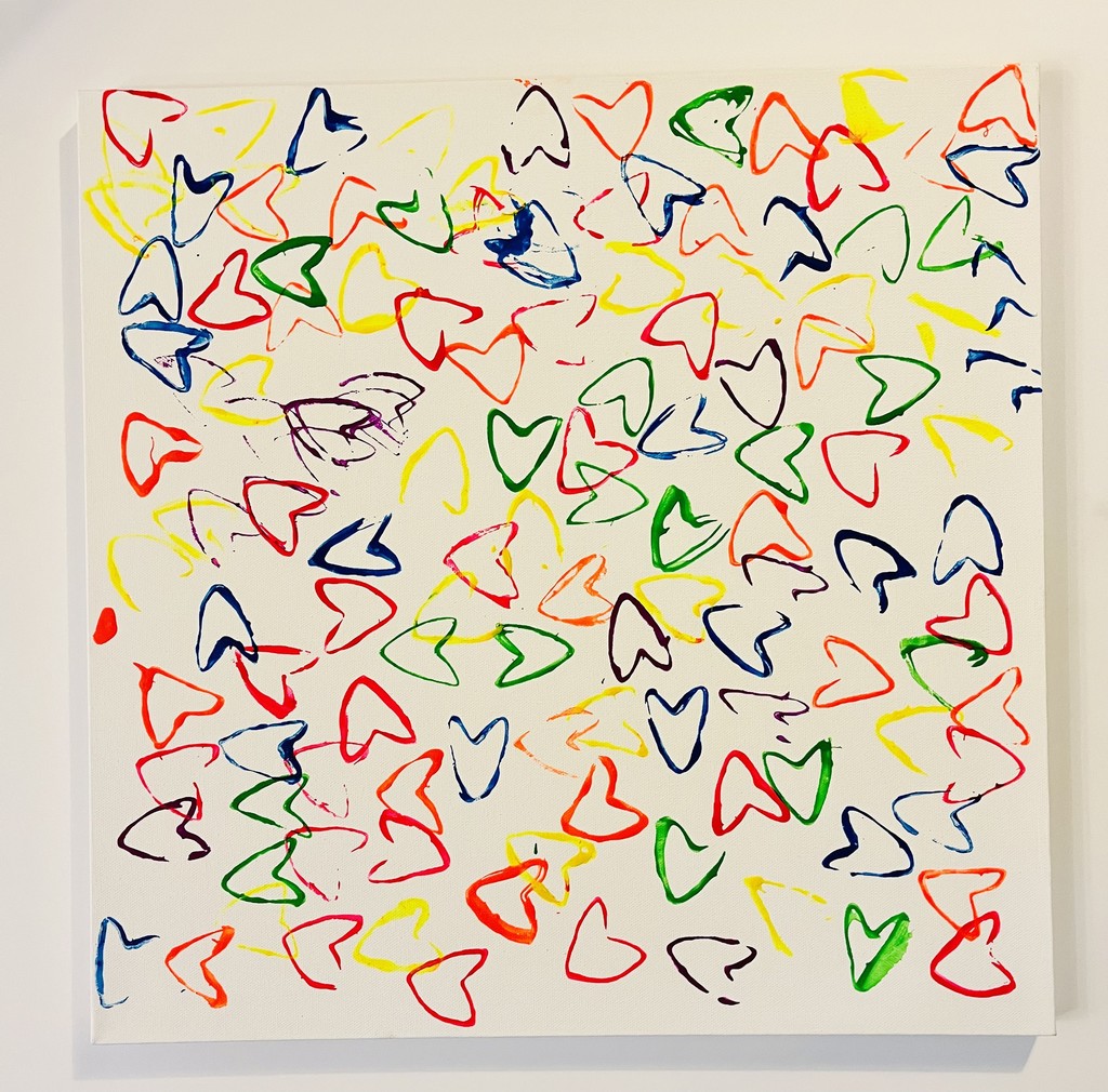 What will our kindergarteners take with them into the future? The importance of being kind to others! And what better way to show that than by making a bunch of hearts. These were created using cut up paper towel rolls that were pinched into heart shapes and then dipped in neon paint.