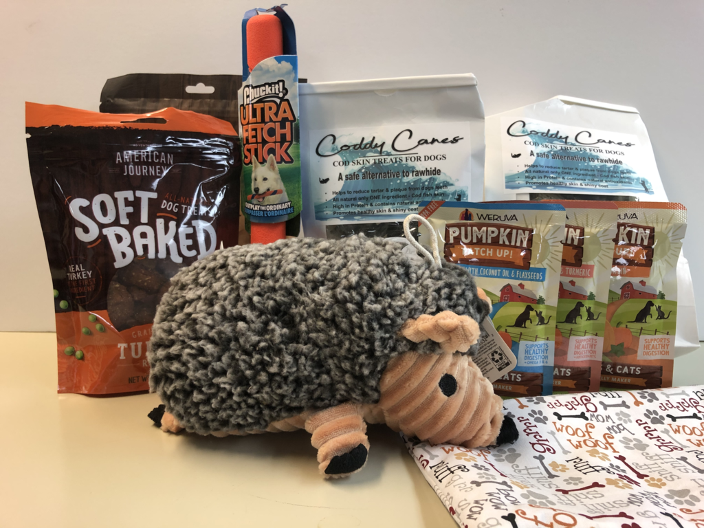 A collection of toys and treats for your pampered pooch!