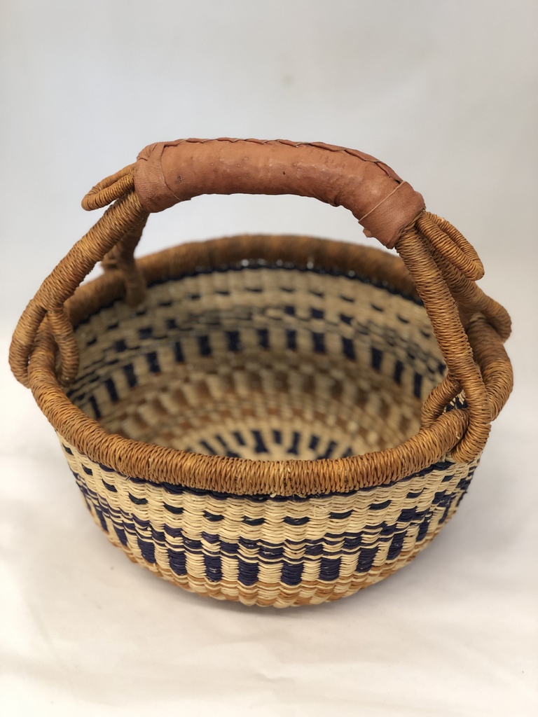 Beautiful Handmade Mini Bolga Basket with Leather Handle.