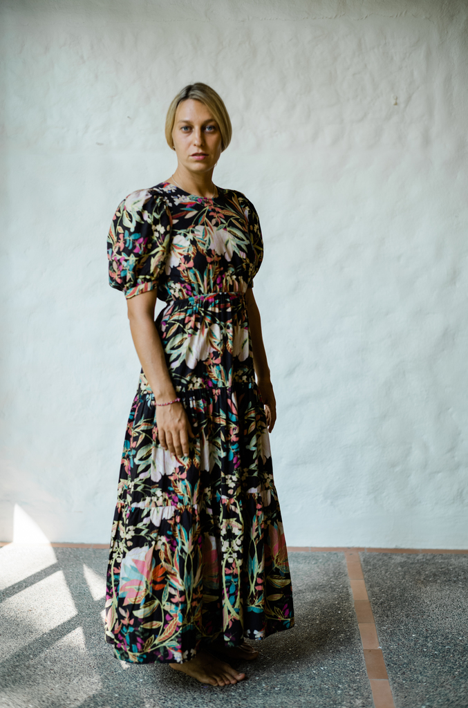 Pre-loved. Romance blooms in this Conditions Apply floral backless dress.