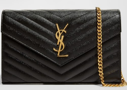 stunning YSL chain bag Embellished with an iconic insignia and punctuated with a chain strap, this chevron quilted wallet-on-chain is a timeless essential.