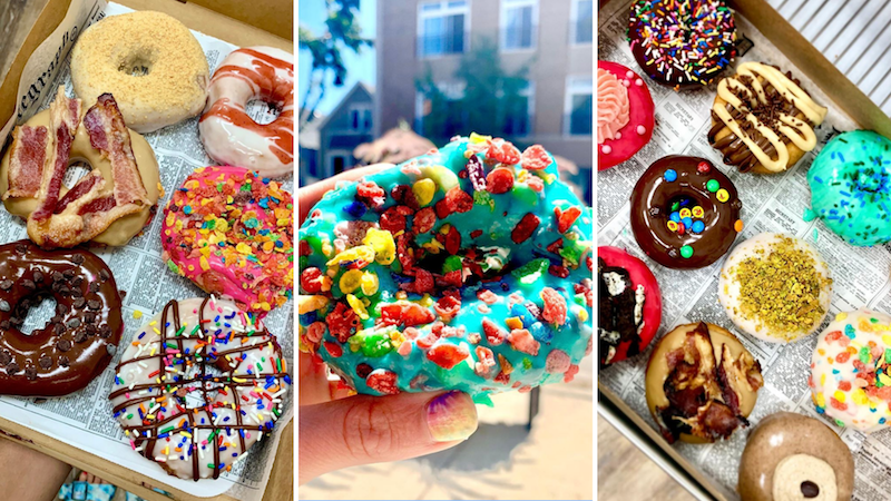 A $25 gift certificate for Dip & Sip Donuts - a small retro mom and pop donut shop in Roscoe Village.
