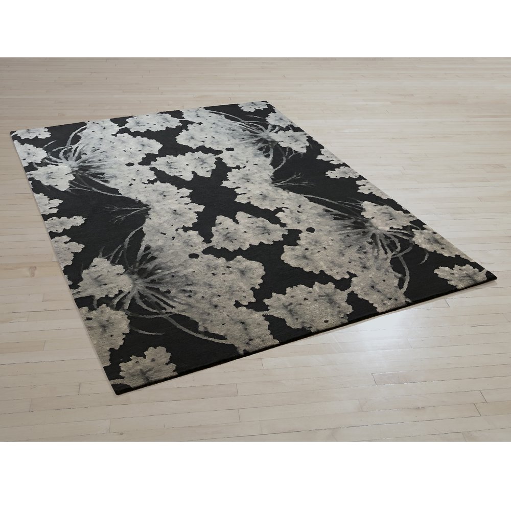 Hand knotted, fine Tibetan wool with pure Chinese silk, in 100 knot, 4mm cut pile construction. Made in Nepal under fair trade conditions.
