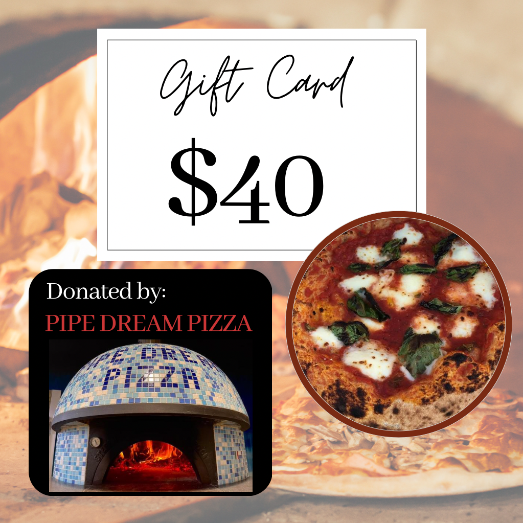 The beautiful blue tiled pizza oven that is used to make mouthwatering flavor combinations like Speck and Onions and Margherita was broght in directly from Naples, Italy. Pipe Dream Pizza keeps it local though, too. They make it a point to utilize fresh offerings from local farmers and distributors in thier made from scratch ingredients. This auction listing includes 2x $20 gift certificates for Pipe Dream Pizza, courtesy of kind donation from Pipe Dream Pizza.