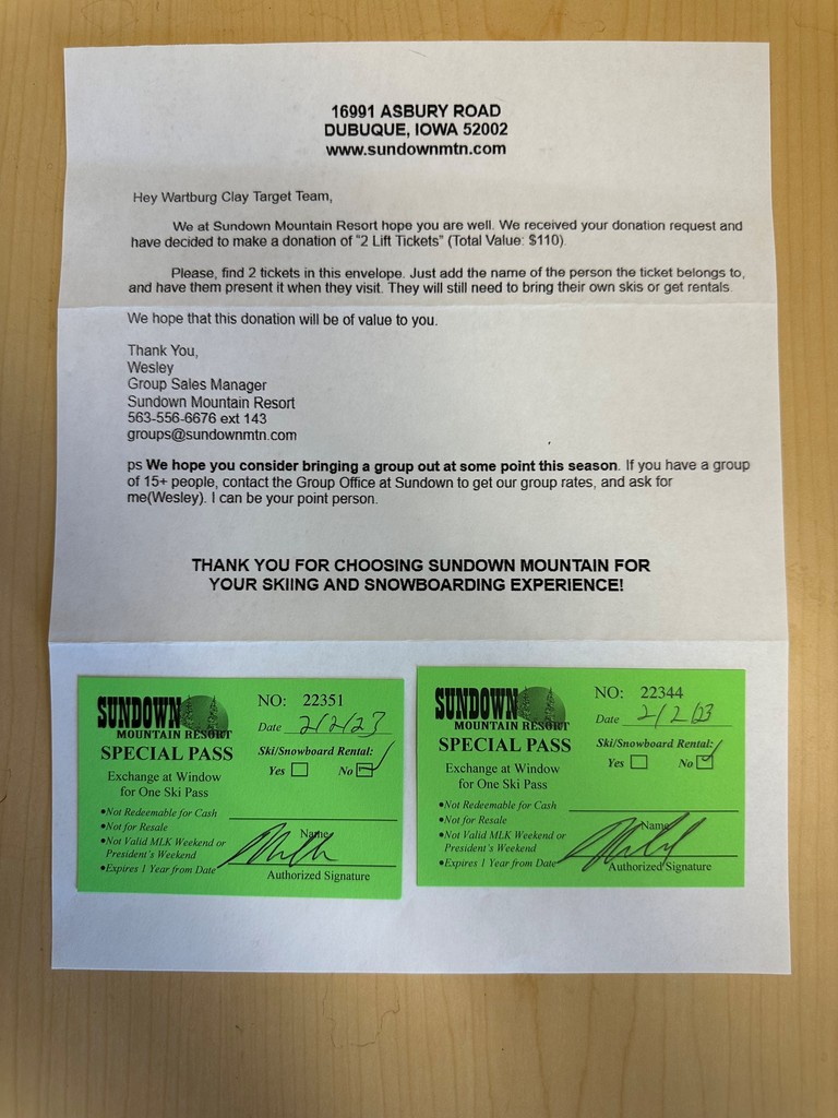 Two lift tickets for Sundown Mountain Resort.