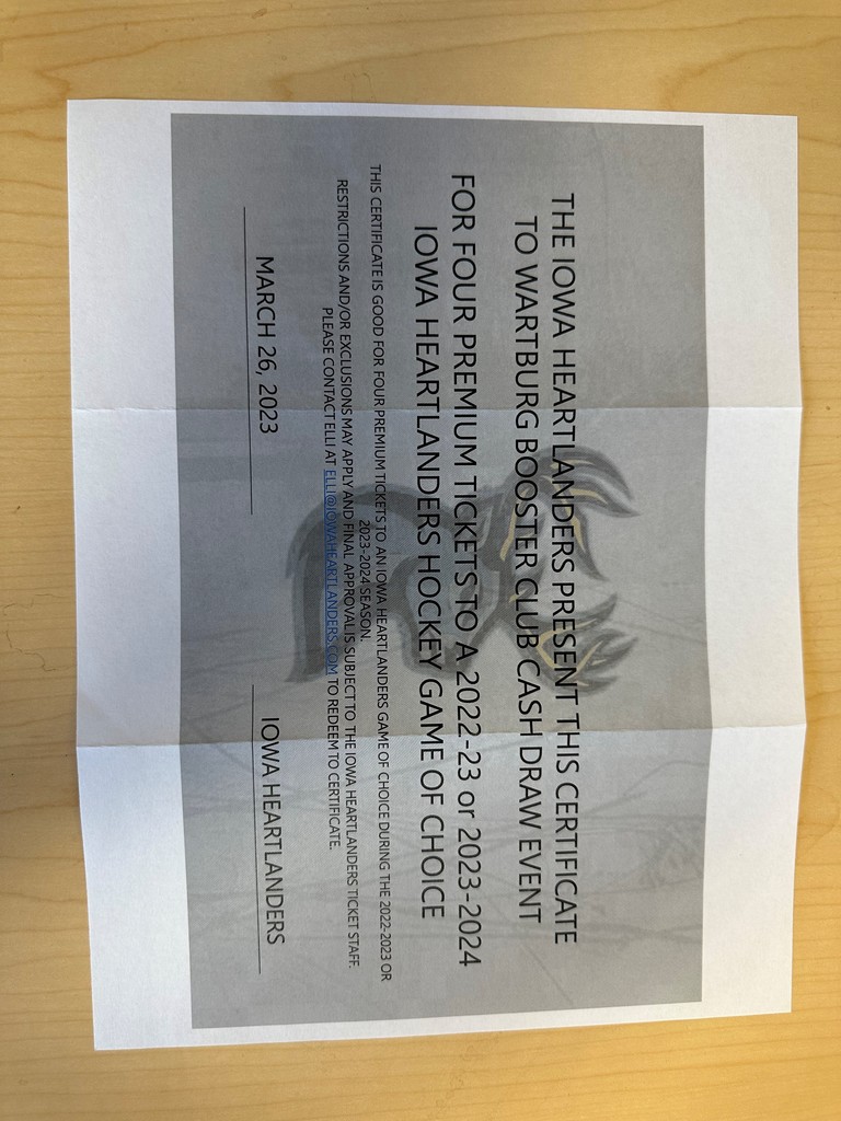 Four premium tickets to the Iowa Heartlanders Hockey game (valid for the 22-23 or 23-24 season).