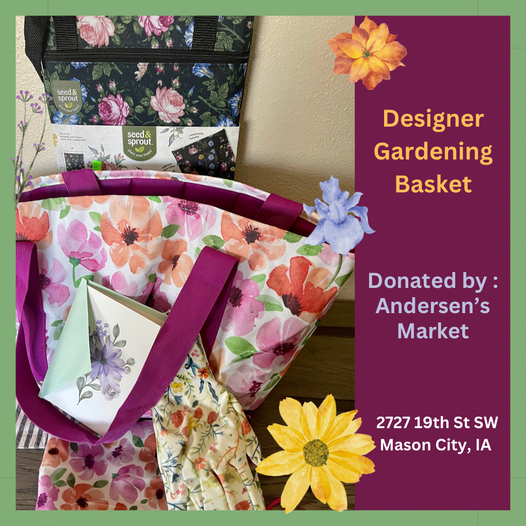 Donated by the kind hearts at Andersen's Market, this basket is just what you need to step into SPRING! It includes a waterproof designer kneeling pad, garden gloves, a packable tote with a carrying case, and a $25 gift certificate to Andersen's Market to purchase your choice of an array of items.