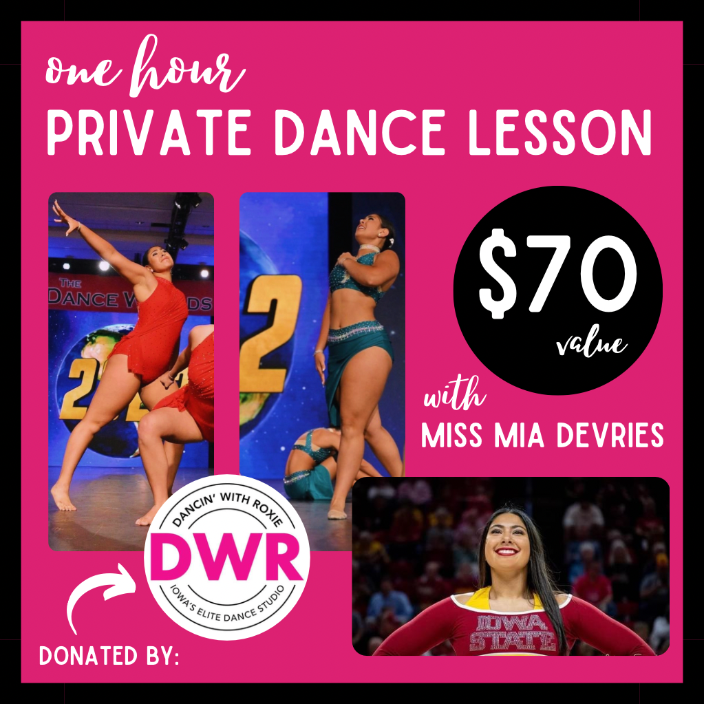 This listing is good for one youth 1:1 one hour dance lesson at Dancin' With Roxie in Clear Lake w/Miss Mia DeVries.