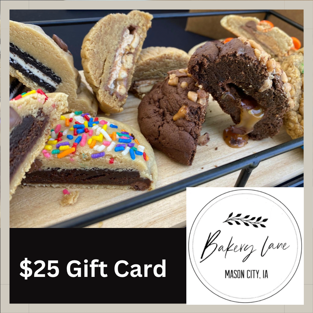 Bakery Lane makes delicious stuffed cookies that are unique and flavorful, but beware...they cause cravings!! This listing is for a $25 gift certificate donated by Bakery Lane.