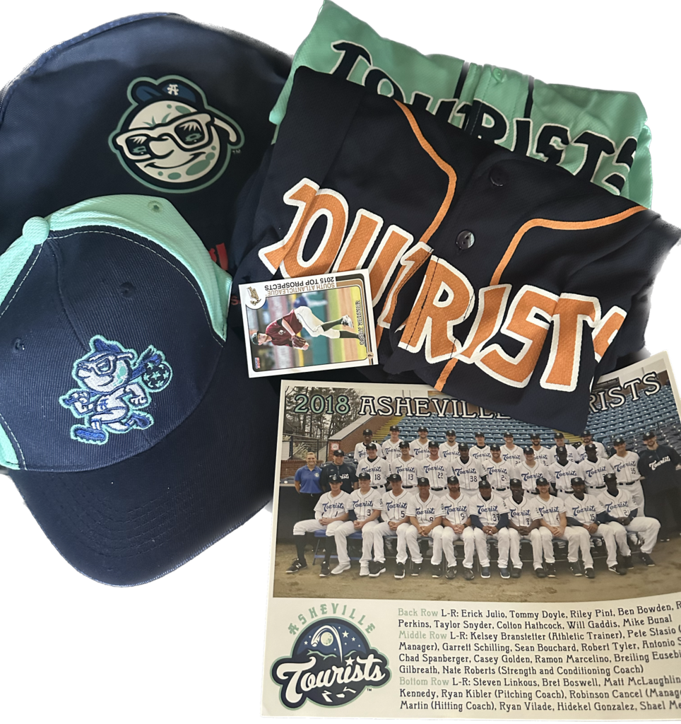 This basket includes 2 Tourist Jerseys (Youth Large and Adult XL), a Logo Baseball Cap, a Logo drawsting bag and Casey Meisner Baseball Card.