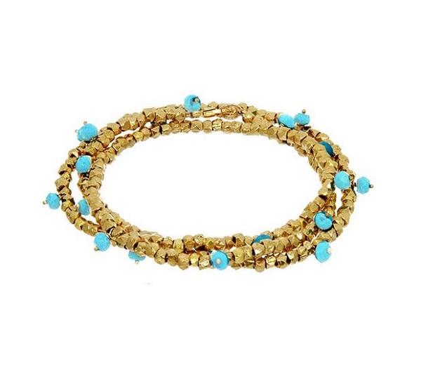 BEADED RONDELLE WRAP BRACELET GOLD TURQUOISE