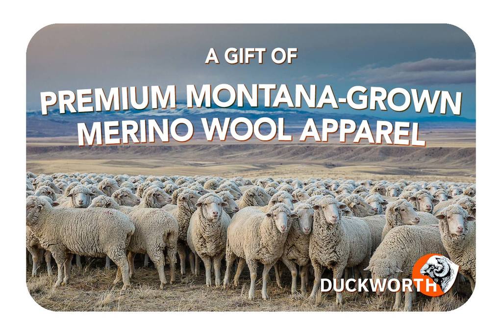 Duckworth is proud to be the world's only source-verified Merino Wool clothing company based in Montana, USA. It?s wool is grown, sheared, and sorted at our ranch in Dillon, Montana.