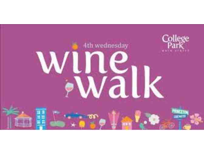 4th Wednesday Wine Walk has been successful in bringing hundreds of new patrons to College Park and has raised thousands of dollars for its businesses. This item can be used at the 4th Wednesday Wine Walk on October 25 or November 22. Bring your friends to one of College Park's most fun events.