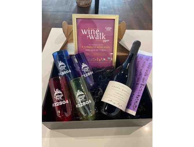 College Park Main Street has donated a special package of four (4) tickets to Wine Walk, four (4) 32804 wine glasses and a bottle of wine.