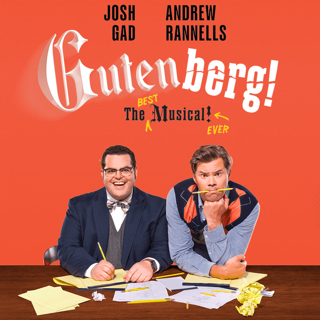 The Broadway premiere of this beloved cult classic reunites Josh Gad and Andrew Rannells, last seen together saying "Hello!" in The Book of Mormon. Gutenberg! The Musical! is a two-person musical spoof about a pair of aspiring playwrights with a hilariously ill-advised project ? a big, splashy musical about printing press inventor Johann Gutenberg.