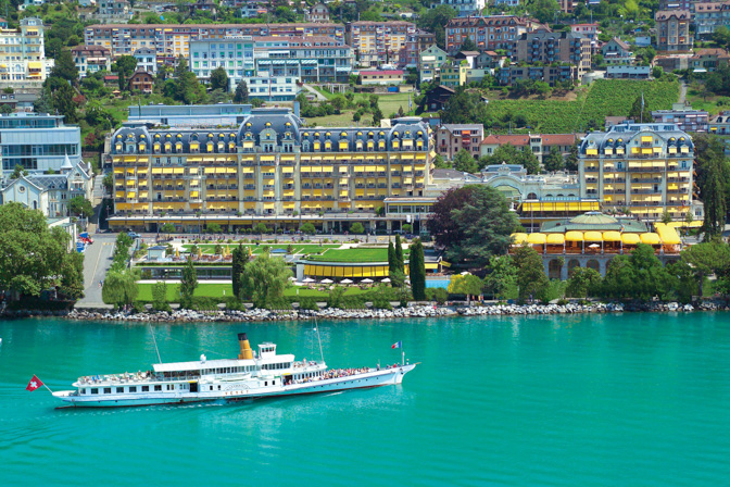 Surrounded by the soaring Alps and nestled along the eastern shores of sparkling Lake Geneva, Fairmont Le Montreux Palace boasts a reputation for impeccable hospitality stretching back to its founding in 1906. The Fairmont is also one of the leading hotels of the world, and you're invited to luxuriate in the decadence of this magnificent hotel, recipient of several prestigious awards, some of which include "Leading Spa", "World's Best Places to Stay" and "Best Wellness Hotels in Switzerland". Fairmont le Montreux Palace is also one of the largest hotels in the Swiss Riviera region, boasting accommodations that are luxuriously furnished and designed to meet five-star standards. As a guest in Montreux, you can experience a culinary journey around the world with the Fairmont's variety of distinct dining venues within the hotel, featuring menus brimming with local ingredients, distinctive dishes, exquisite Swiss wines and a stunning outdoor terrace.