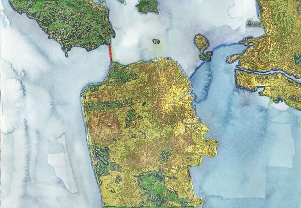 Altitude from 49,000 feet, 20x30 inch fine art rag paper print. SAN FRANCISCO - CALIFORNIA.