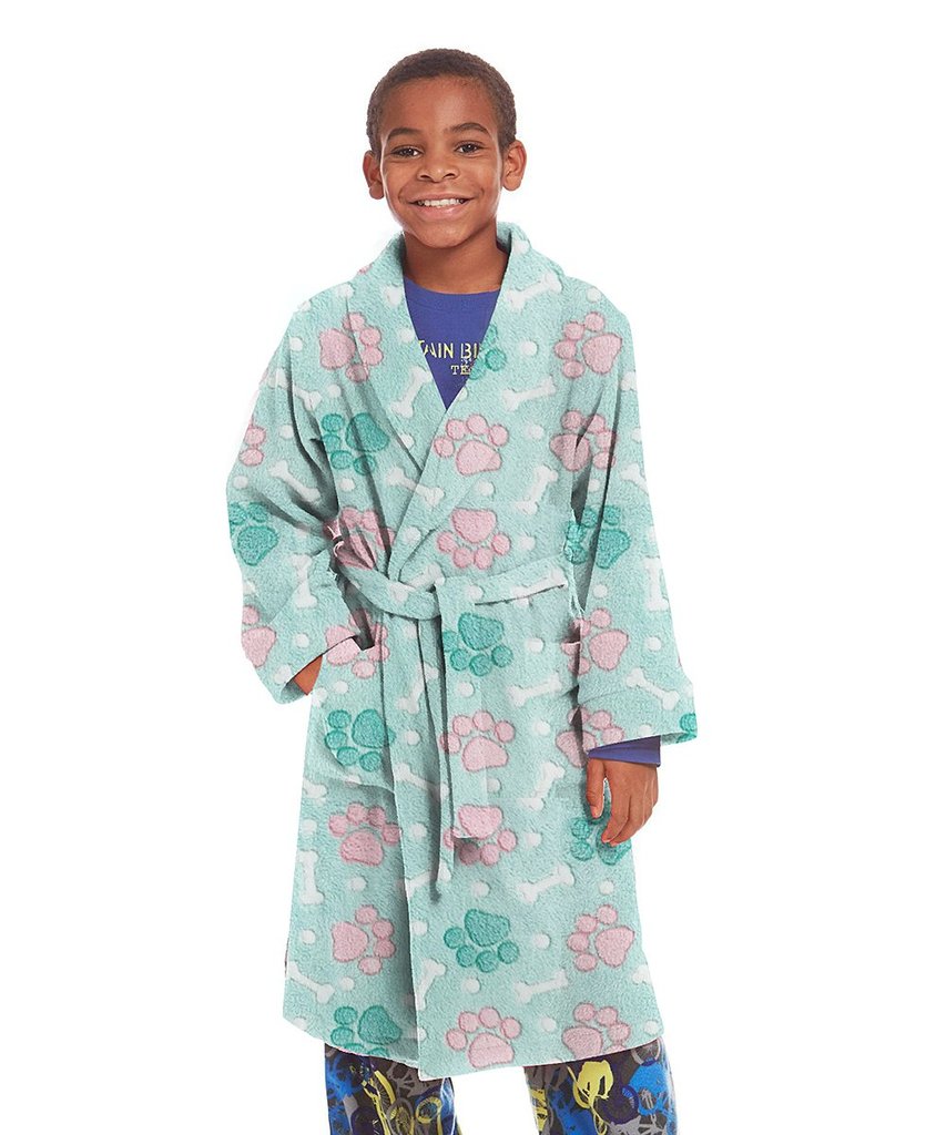 Blue Glow-in-the-Dark Paws & Bones Robe - Kids