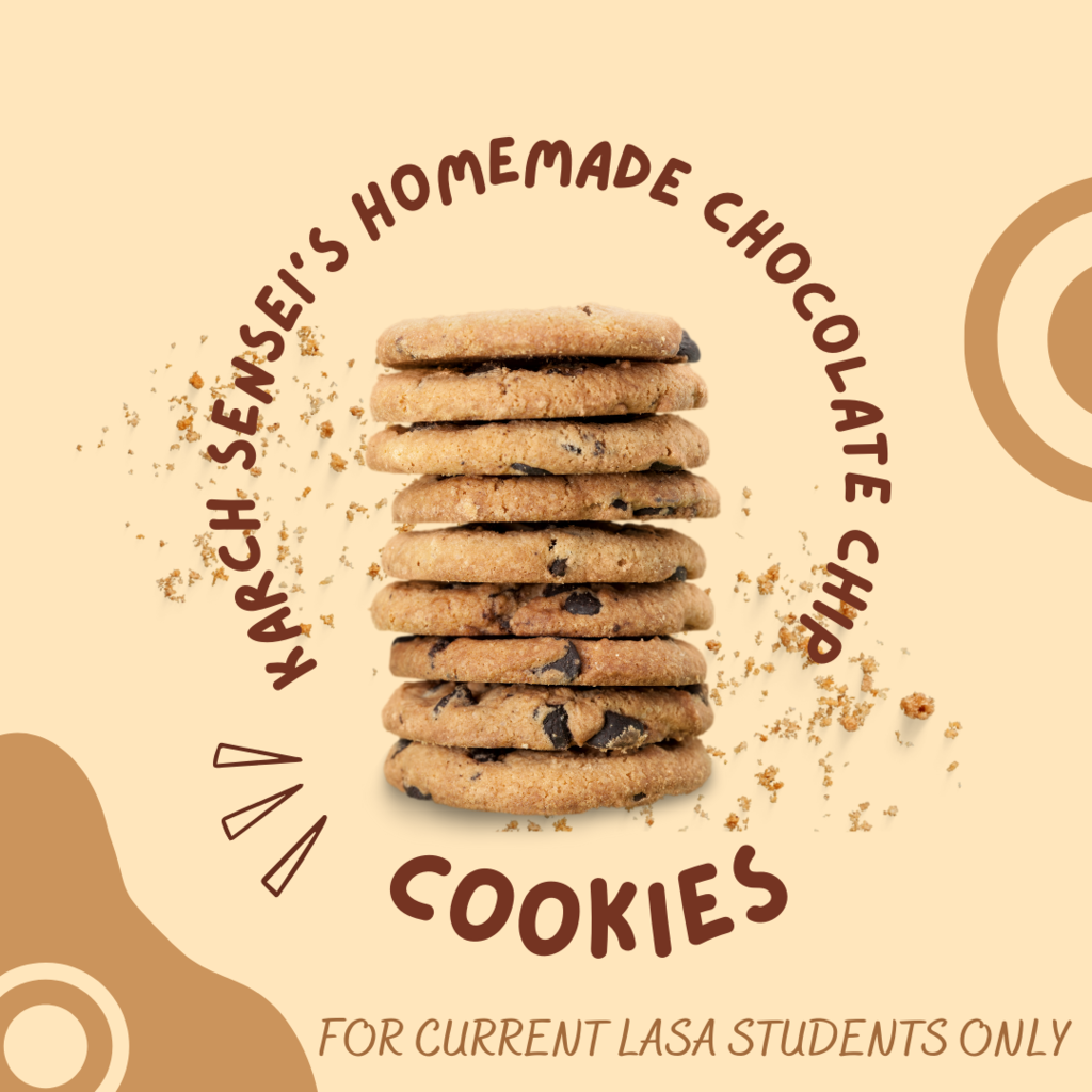Winner to receive a dozen homemade chocolate chip cookies from Karch Sensei on a Monday in January (exact date TBD with donor/student).