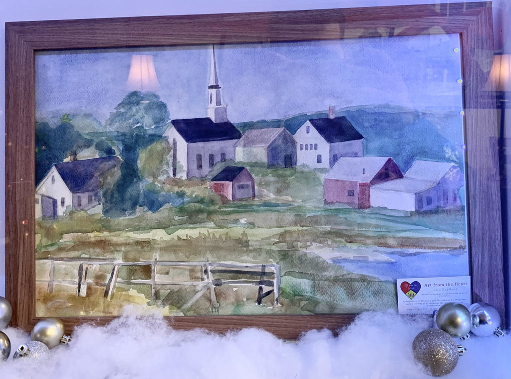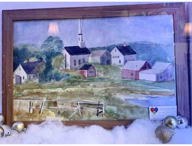 Beautiful painting depicting a scene of a quaint New England village. Painted by local artist Lisa Buglione-Blomgren.